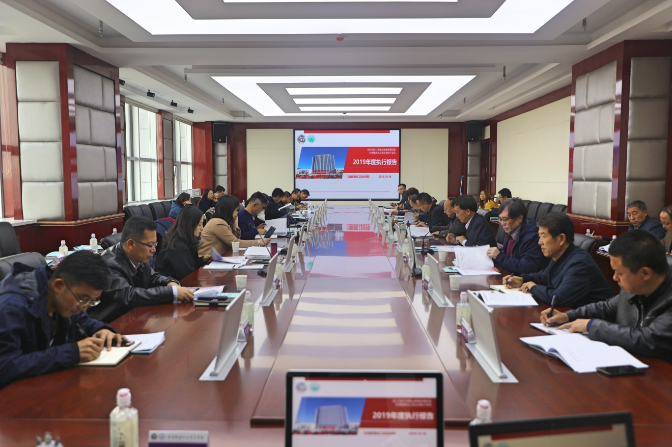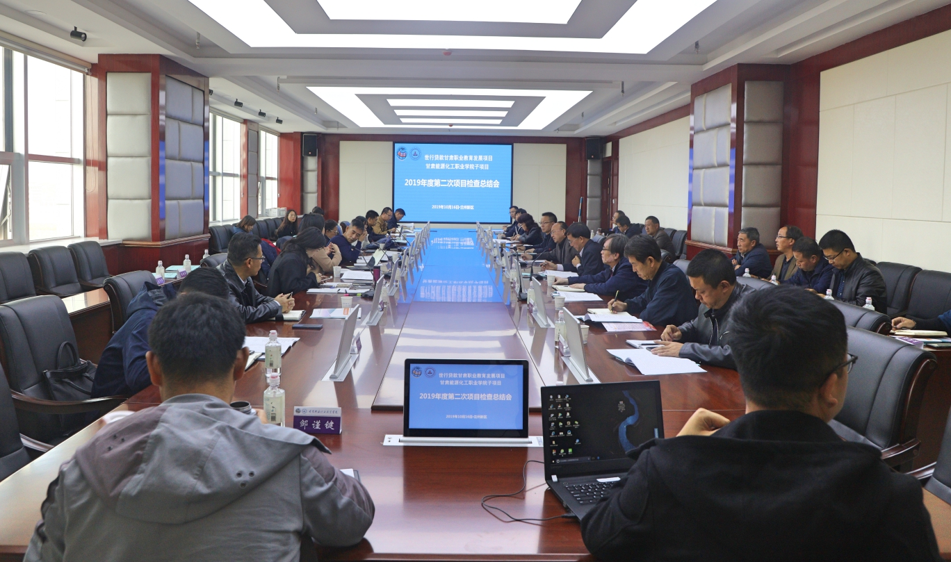 2019年10月16日,兰州新区初雪放晴,天高云淡,整个校园光彩宜人,在收获与期待中我院迎来世行驻华代表处肖丽萍、王文槿、苏涛、冯意韧、王霖5位专家和省项目办主任李伟处长等一行6人来我院检查世行贷款职业教育发展项目执行情况。我院党委书记蒲金龙、院长吴兰州、党委副书记刘开明,副院长于喜中、王晖以及学院副处级以上干部、有关部门负责人参加了此次检查工作。