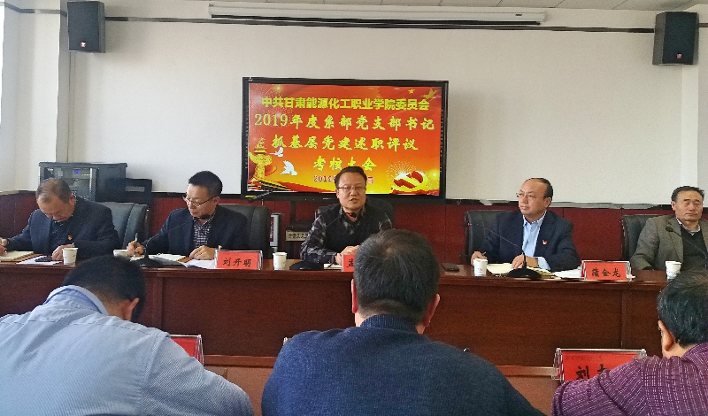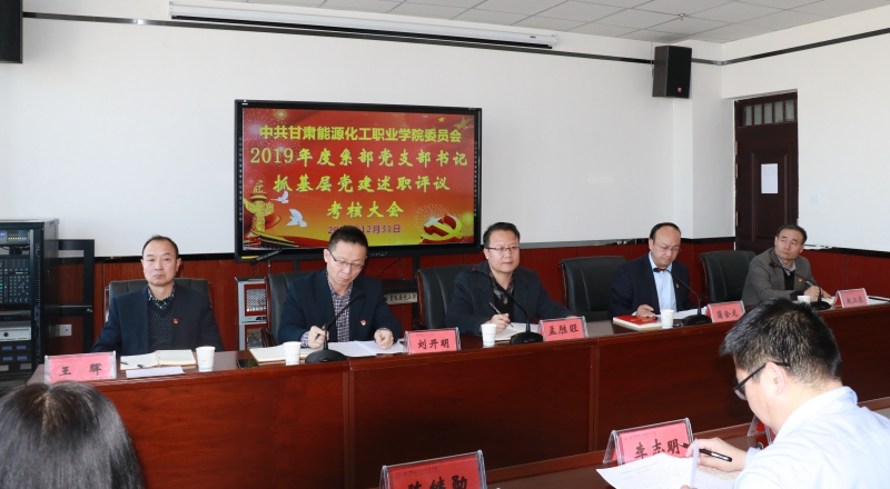 2019年12月31日下午,学院党委在综合楼904会议室召开各系部党支部书记抓基层党建述职评议考核大会。省委教育工委党建处副处长孟胜旺、党委书记蒲金龙、党委副书记刘开明、副院长赵江东、王晖出席出席会议,各党支部书记及委员、各系主任、思政部负责人、党员代表参加会议,会议由刘开明主持。