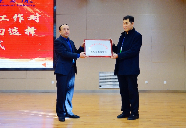 会上,党委副书记刘开明宣读了《im体育关于向优质生源地学校授牌的决定》;蒲金龙书记代表学院向优质生源地学校授牌;会宁县中等职业学校张克礼校长代表参加中高职教育对接会的学校发言;中盐吉兰泰盐化集团有限公司董事会秘书、党委组织部部长兼人力资源部部长王多荣代表参加招聘会的企业发言;16材料工程技术班郭亚飞同学代表2019届毕业生发言。